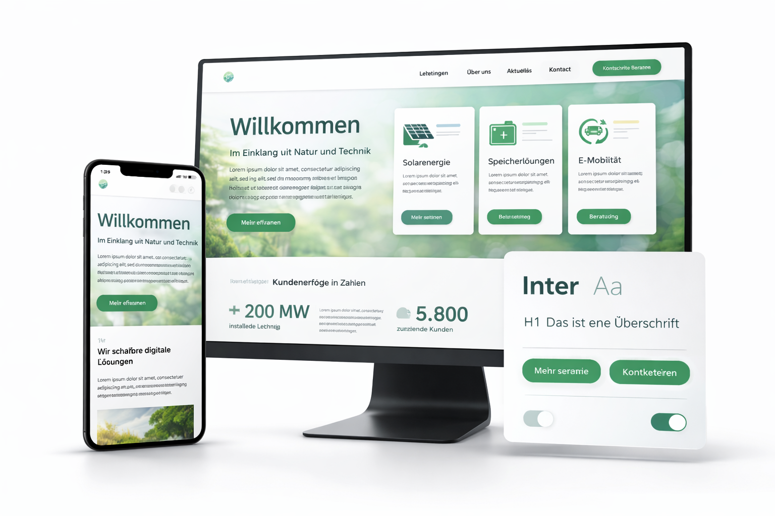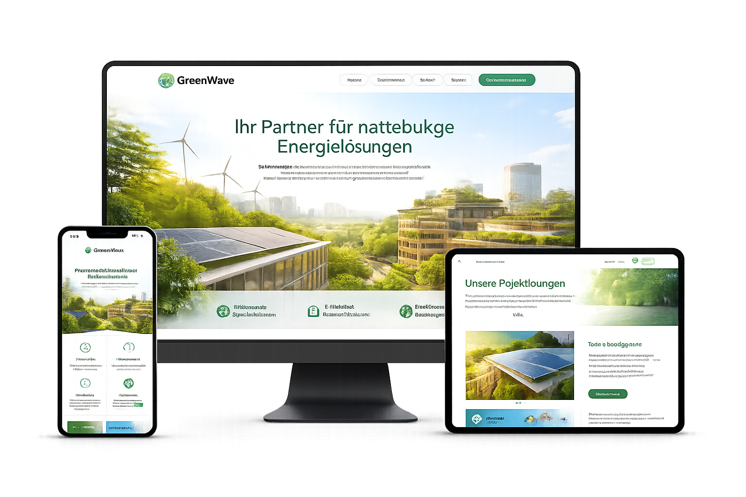 GreenWave Energy entwickelt und betreibt nachhaltige Energiekonzepte für mittelständische Unternehmen. Ziel war ein moderner Webauftritt, der Vertrauen schafft, komplexe Inhalte verständlich macht und messbar neue Anfragen generiert.