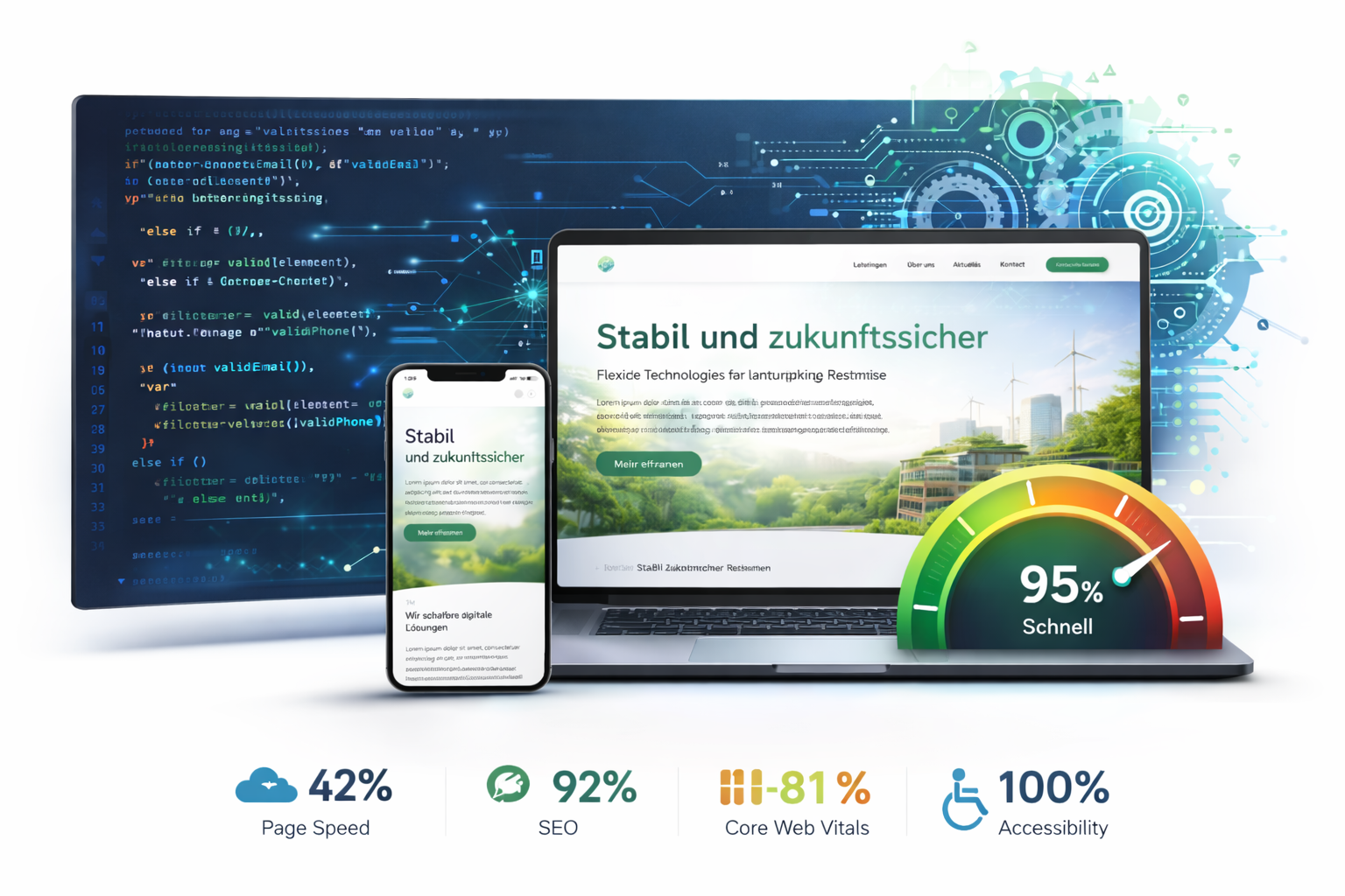 Unsere Websites sind technisch sauber aufgebaut, blitzschnell geladen und für moderne Endgeräte optimiert – für bessere Nutzererlebnisse und messbar höhere Conversions.